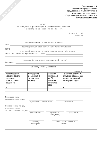 - 1516Отчет об отпуске и реализации наркотических средств и психотропных веществ. Форма № 1-ОР