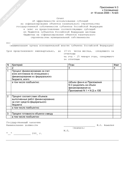 - 1538Отчет об эффективности использования субсидий на софинансирование объектов капитального строительства государственной собственности субъектов Российской Федерации (приложение к соглашению о предоставлении из федерального бюджета бюджету субъекта Российской Федерации субсидий на софинансирование объектов капитального строительства государственной собственности субъектов Российской Федерации)