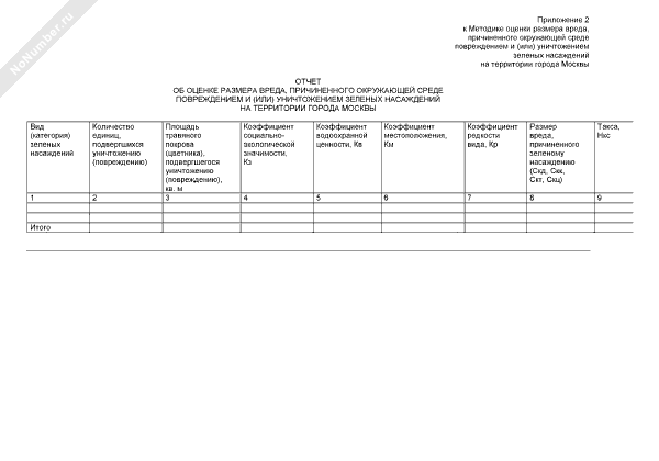 - 1524Отчет об оценке размера вреда, причиненного окружающей среде повреждением и (или) уничтожением зеленых насаждений на территории города Москвы