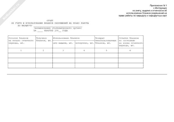 - 1533Отчет об учете и использовании бланков разрешений на право работы по маршруту регулярного сообщения на территории Московской области