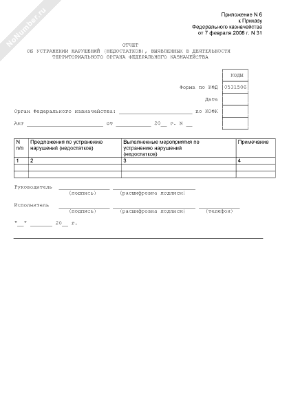 - 1529Отчет об устранении нарушений (недостатков), выявленных в деятельности территориального органа Федерального казначейства