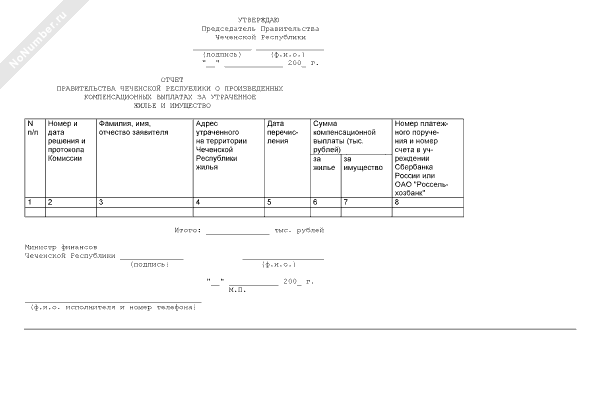 - 1621Отчет правительства Чеченской Республики о произведенных компенсационных выплатах за утраченное жилье и имущество