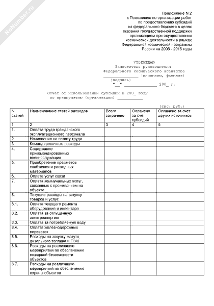 - 1625Отчет предприятия (организации) об использовании субсидии в целях оказания государственной поддержки организациям при осуществлении космической деятельности в рамках Федеральной космической программы России на 2006–2015 годы