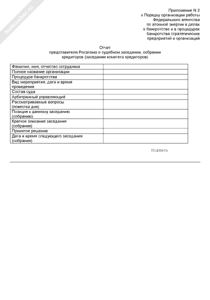 - 1626Отчет представителя Федерального агентства по атомной энергии о судебном заседании, собрании кредиторов (заседании комитета кредиторов)