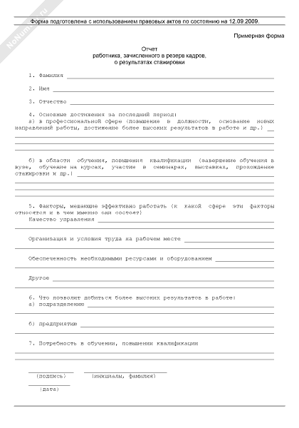 - 1629Отчет работника, зачисленного в резерв кадров, о результатах стажировки