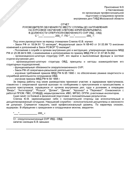 - 1636Отчет руководителя обучения по месту службы до направления на курсовое обучение сотрудника в должности оперуполномоченного ОУР УВД-ОВД