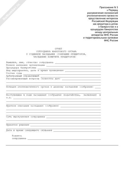 - 1641Отчет сотрудника налогового органа о судебном заседании (собрании кредиторов, заседании комитета кредиторов)