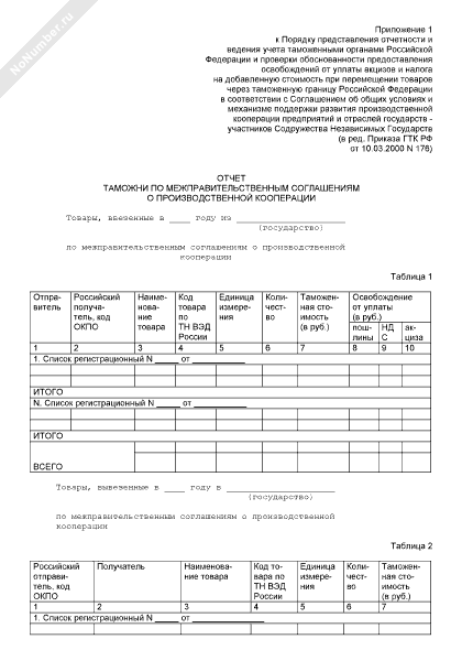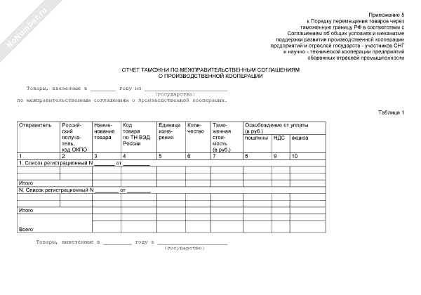 - 1650Отчет таможни по межправительственным соглашениям о производственной кооперации