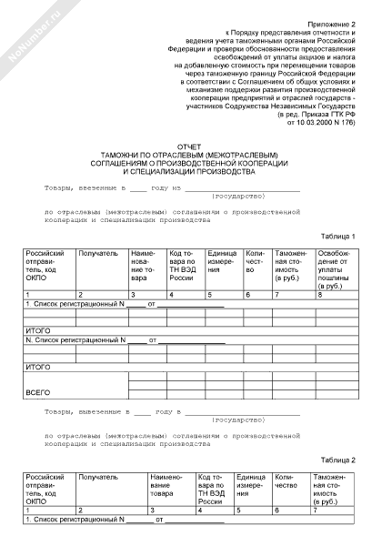 - 1651Отчет таможни по отраслевым (межотраслевым) соглашениям о производственной кооперации и специализации производства