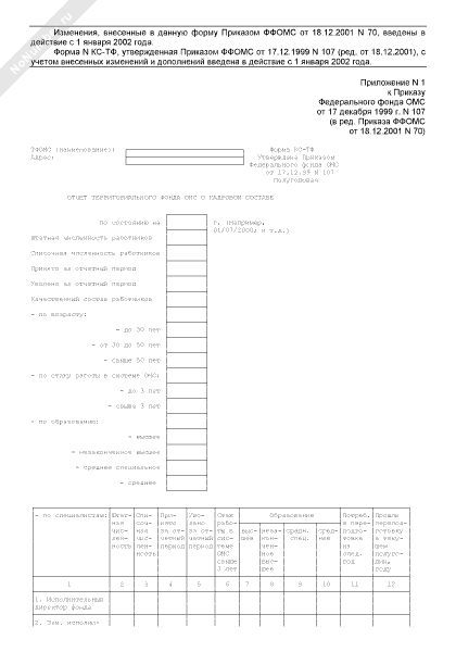 - 1655Отчет территориального фонда обязательного медицинского страхования о кадровом составе. Форма № КС-ТФ