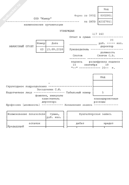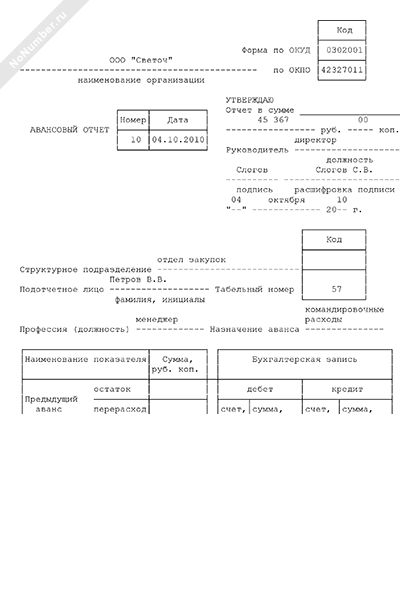 - 1879Авансовый отчет. Унифицированная форма № АО-1