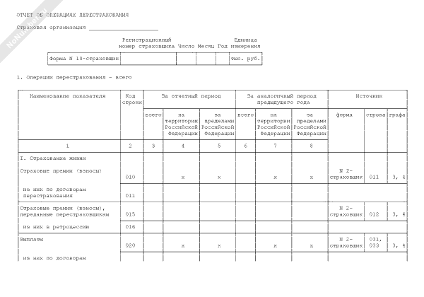 - 1861Формы отчетности, представляемой в порядке надзора. Отчет об операциях перестрахования. Форма № 10-страховщик