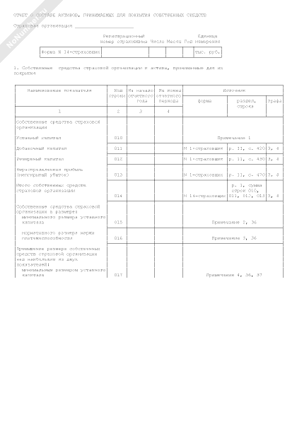 - 1862Формы отчетности, представляемой в порядке надзора. Отчет о составе активов, принимаемых для покрытия собственных средств. Форма № 14-страховщик
