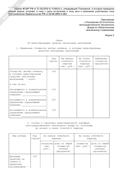 - 1864Формы отчетности негосударственного пенсионного фонда по обязательному пенсионному страхованию. Отчет об инвестировании средств пенсионных накоплений (форма № 2)