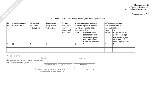 Отчет Департамента лесного хозяйства. Организация использования лесов (заготовка древесины). Форма № 2.19