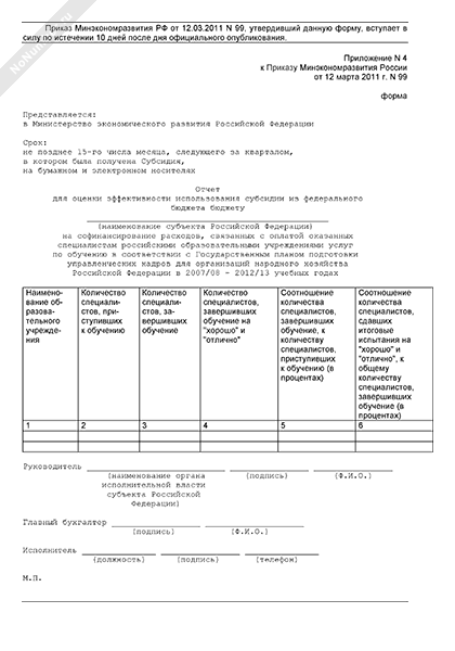 - Источник– Приказ Минэкономразвития РФ от 12.03.2011 № 99