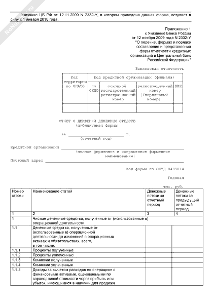 Отчет кредитной организации о движении денежных средств (публикуемая форма)
