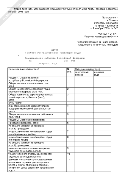 Отчет о работе государственной инспекции труда. Форма № 21-ГИТ