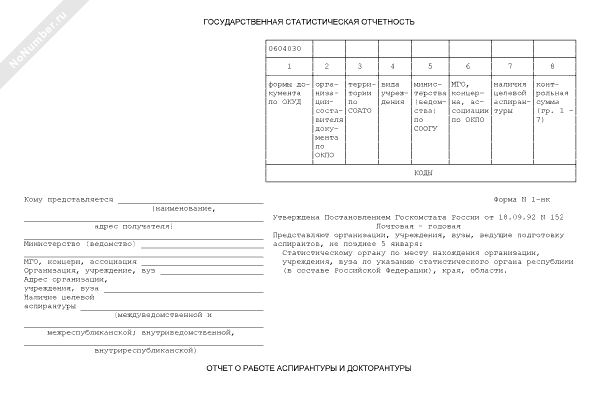 Отчет о работе аспирантуры и докторантуры. Форма № 1-нк