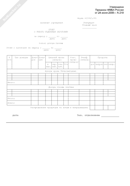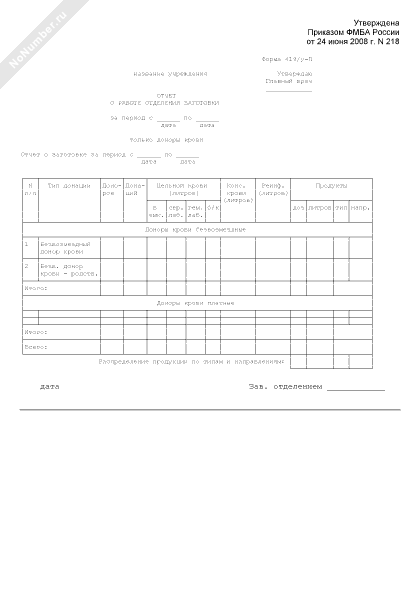 Отчет о работе отделения заготовки. Форма № 419/у-П