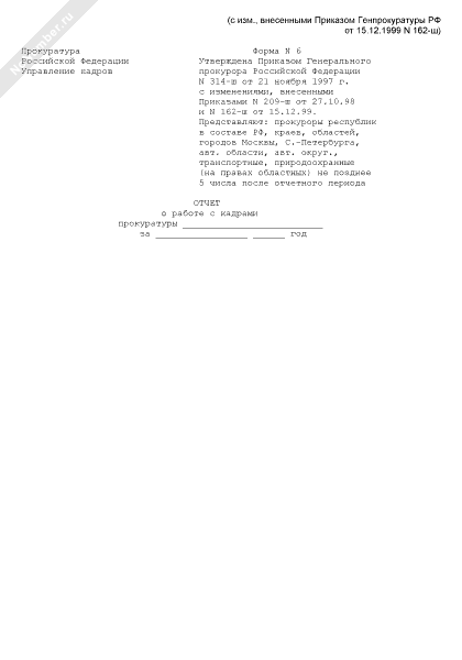 Отчет о работе с кадрами прокуратуры (форма № 6)