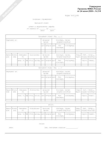 Отчет о работе выездного отдела за период. Форма № 415/у-П2