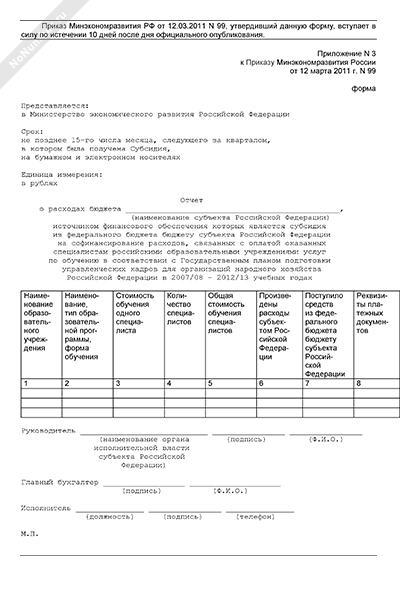 - Источник– Приказ Минэкономразвития РФ от 12.03.2011 № 99