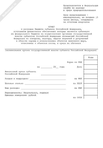 Отчет о расходах бюджета субъекта Российской Федерации, источником финансового обеспечения которых является субвенция из федерального бюджета на осуществление органами государственной власти субъектов Российской Федерации полномочий Российской Федерации по контролю, надзору, выдаче лицензий и разрешений в области охраны и использования объектов животного мира, отнесенных к объектам охоты, и среды их обитания (рекомендуемый образец заполнения)