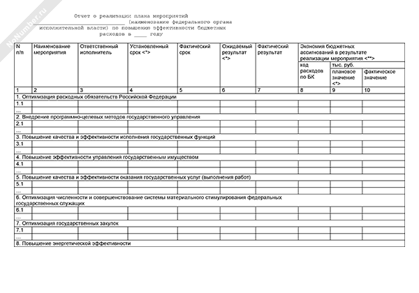 Отчет о реализации плана мероприятий по повышению эффективности бюджетных расходов (рекомендуемый образец заполнения)