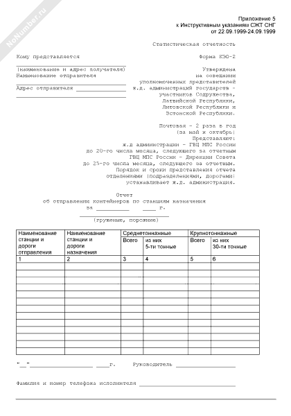 Отчет об отправлении контейнеров по станциям назначения. Форма № КЭО-2