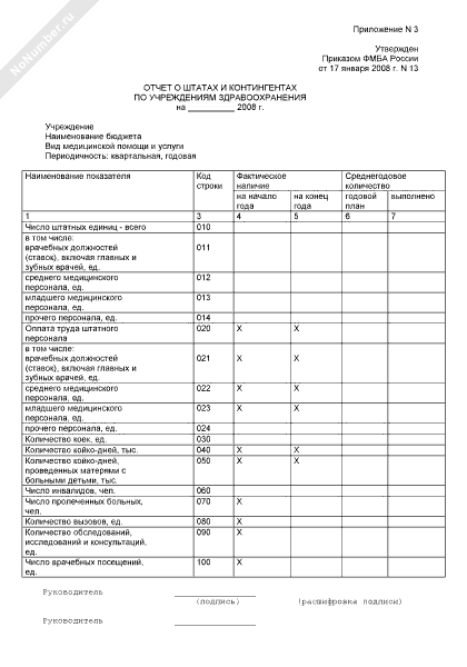 Отчет о штатах и контингентах по учреждениям здравоохранения