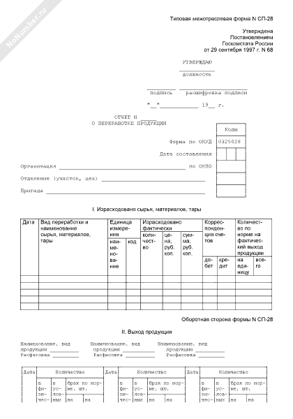 Отчет о переработке продукции (типовая межотраслевая форма № СП-28)