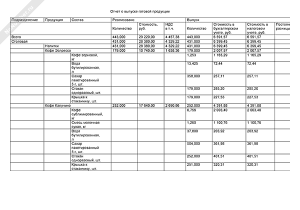 Отчет о выпуске готовой продукции (применяется при автоматизированном способе ведения учета) (рекомендуемый образец заполнения)