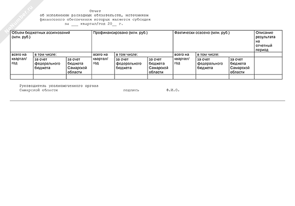 Отчет об исполнении расходных обязательств, источником финансового обеспечения которых является субсидия (приложение к соглашению о предоставлении субсидии из федерального бюджета бюджету Самарской области)