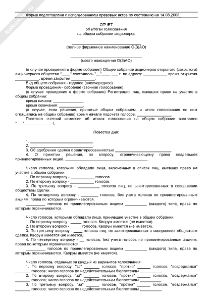 Отчет об итогах голосования на общем собрании акционеров (рекомендуемый образец заполнения)