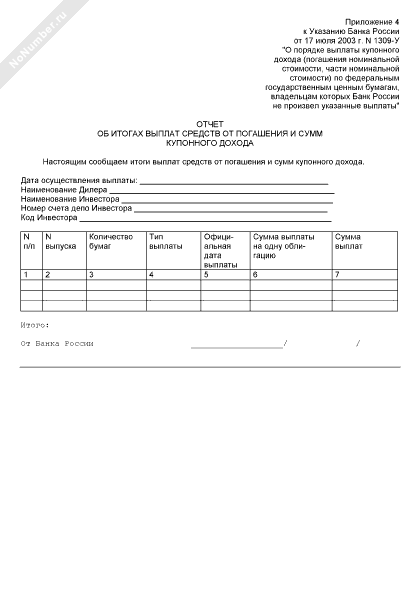 Отчет об итогах выплат средств от погашения и сумм купонного дохода