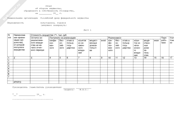 Отчет об обороте имущества, обращенного в собственность государства (рекомендуемый образец заполнения)