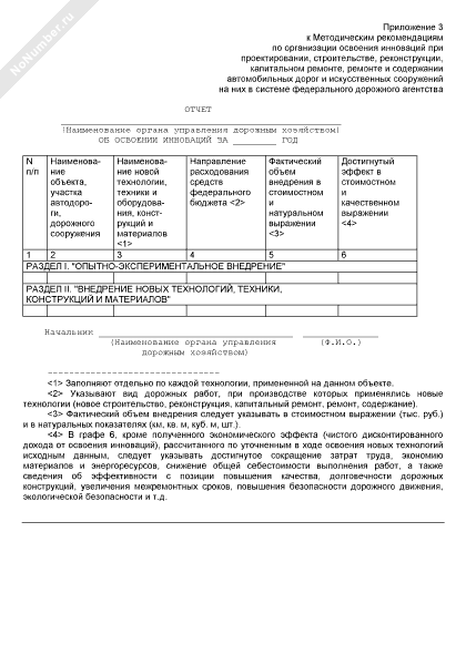 Отчет органа управления дорожным хозяйством об освоении инноваций (рекомендуемый образец заполнения)