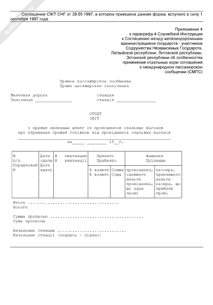 Отчет о приеме наличных денег от проводников спальных вагонов