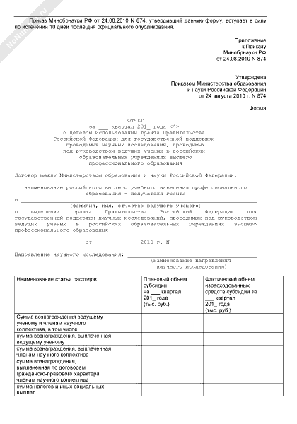- Источник– Приказ Минобрнауки РФ от 24.08.2010 № 874