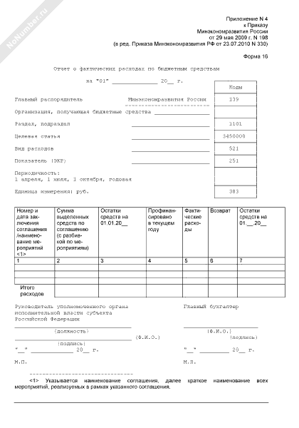 Отчет о фактических расходах по бюджетным средствам (форма № 16)