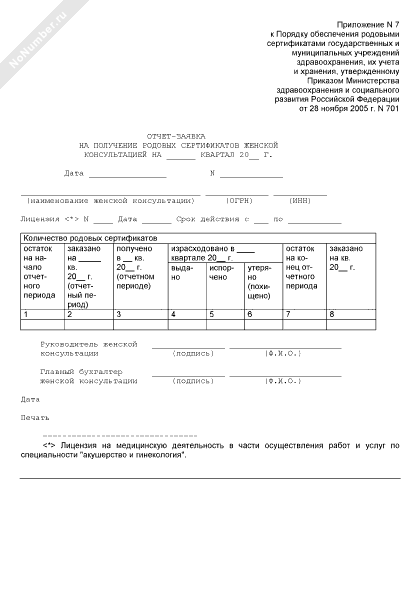 Отчет-заявка на получение родовых сертификатов женской консультацией