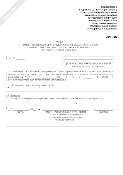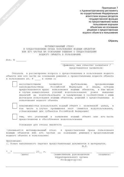 - 1Мотивированный отказ в предоставлении права пользования водным объектом или его частью на основании решения о предоставлении водного объекта в пользование
