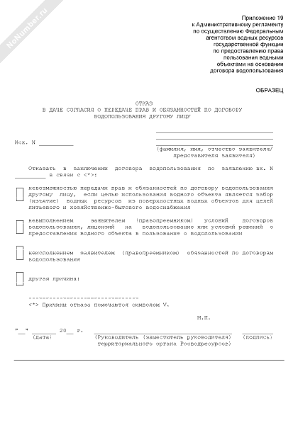 - 9Отказ в даче согласия о передаче прав и обязанностей по договору водопользования другому лицу