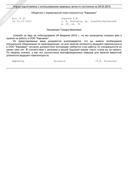 - 17Отказ в приеме на работу кандидату на вакантную должность