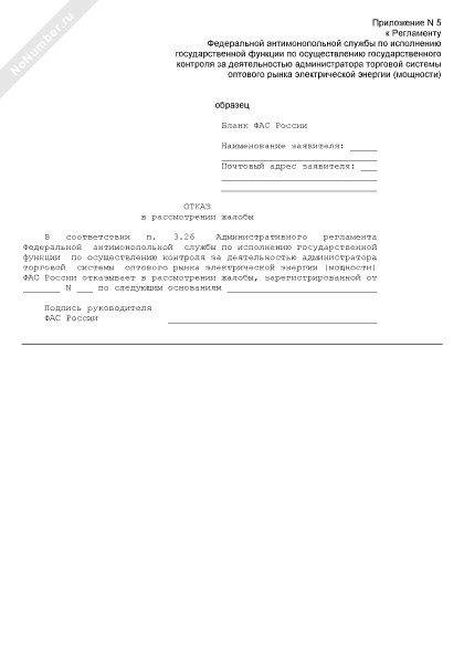 - 18Отказ в рассмотрении жалобы Федеральной антимонопольной службой России по исполнению государственной функции по осуществлению контроля за деятельностью администратора торговой системы оптового рынка электрической энергии (мощности)