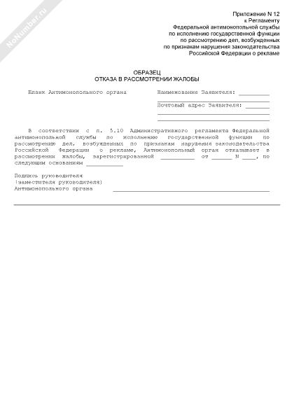 - 19Отказ в рассмотрении жалобы в Федеральной антимонопольной службе по рассмотрению дел по признакам нарушения законодательства Российской Федерации о рекламе
