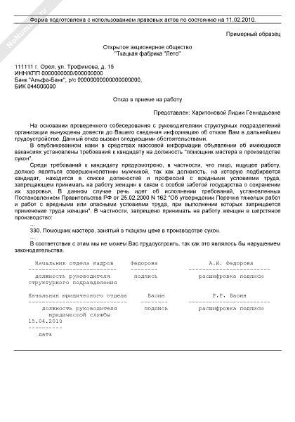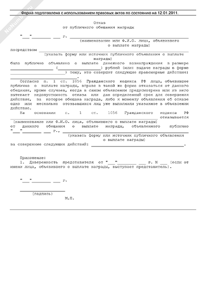 Отказ представлен в форматах DOC и RTF, поэтому откроется в любых версиях Microsoft Word или Open Office.
