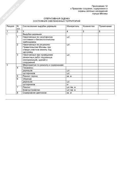 Ежегодная плановая оценка состояния озелененных территорий (рекомендуемый образец заполнения)