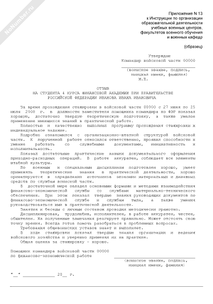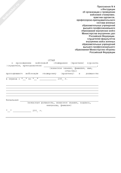 - 33Отзыв о прохождении войсковой стажировки (практики) курсанта (слушателя, преподавателя) высшего профессионального образования внутренних войск Министерства внутренних дел Российской Федерации